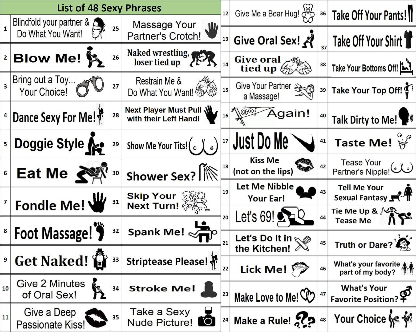 š Various 48 Erotic Commands: Are you afraid of swearing? We have it ready for you. Messages with pictures can help you express your thoughts without using words. If you have unfulfilled sexual fantasies, this game can definitely help you tick those boxes.