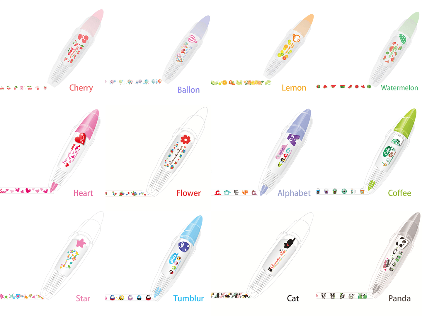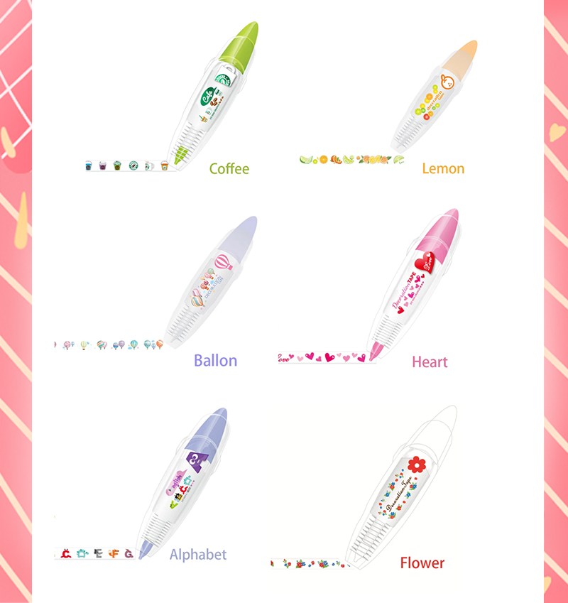 【Tape of pen】 Combine the element of pen and tape, stick a cute pattern accurately and clearly.