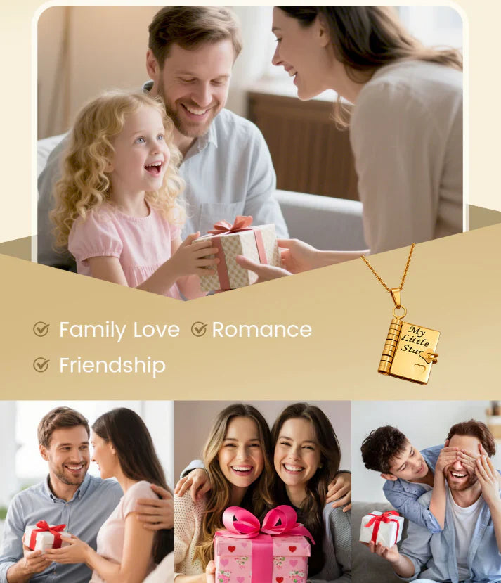 ✨ My 7-pages Daughter Book Necklace ✨Celebrate the unique bond between you and your daughter with this charming book pendant necklace.